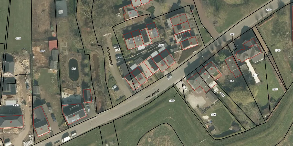 Het perceel waarop Grotestraat 8 staat heeft een oppervlakte van 2140 m². Dit is een zeer groot perceel. De perceeloppervlakte wordt geregistreerd door het Kadaster. Gedetailleerde informatie over de maten van dit perceel kunt u vinden in het rapport Kadastrale kaart met maatvoering van Grotestraat 8.