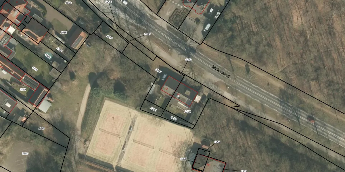 Moleneind 12 is gelegen op kadastraal perceel BGN02S2203. Deze kadastrale aanduiding is uniek en wordt gebruikt door het Kadaster om eigendomsrechten en andere zakelijke rechten vast te leggen. Het perceel maakt onderdeel uit van de kadastrale gemeente Bergen Limburg.