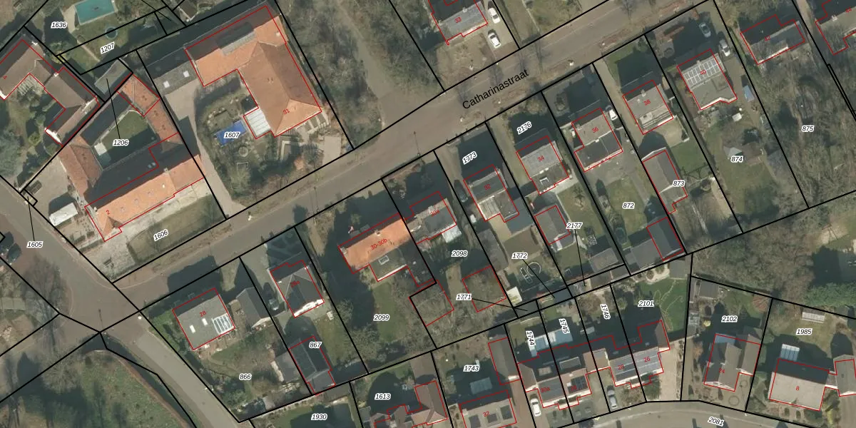 Het perceel waarop Catharinastraat 30-a staat heeft een oppervlakte van 684 m². Dit is een groot perceel. De perceeloppervlakte wordt geregistreerd door het Kadaster. Gedetailleerde informatie over de maten van dit perceel kunt u vinden in het rapport Kadastrale kaart met maatvoering van Catharinastraat 30-a.