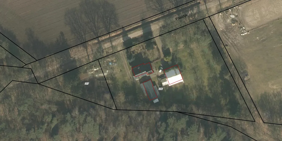 Het perceel waarop Paaldijk 2 staat heeft een oppervlakte van 4860 m². Dit is een zeer groot perceel. De perceeloppervlakte wordt geregistreerd door het Kadaster. Gedetailleerde informatie over de maten van dit perceel kunt u vinden in het rapport Kadastrale kaart met maatvoering van Paaldijk 2.