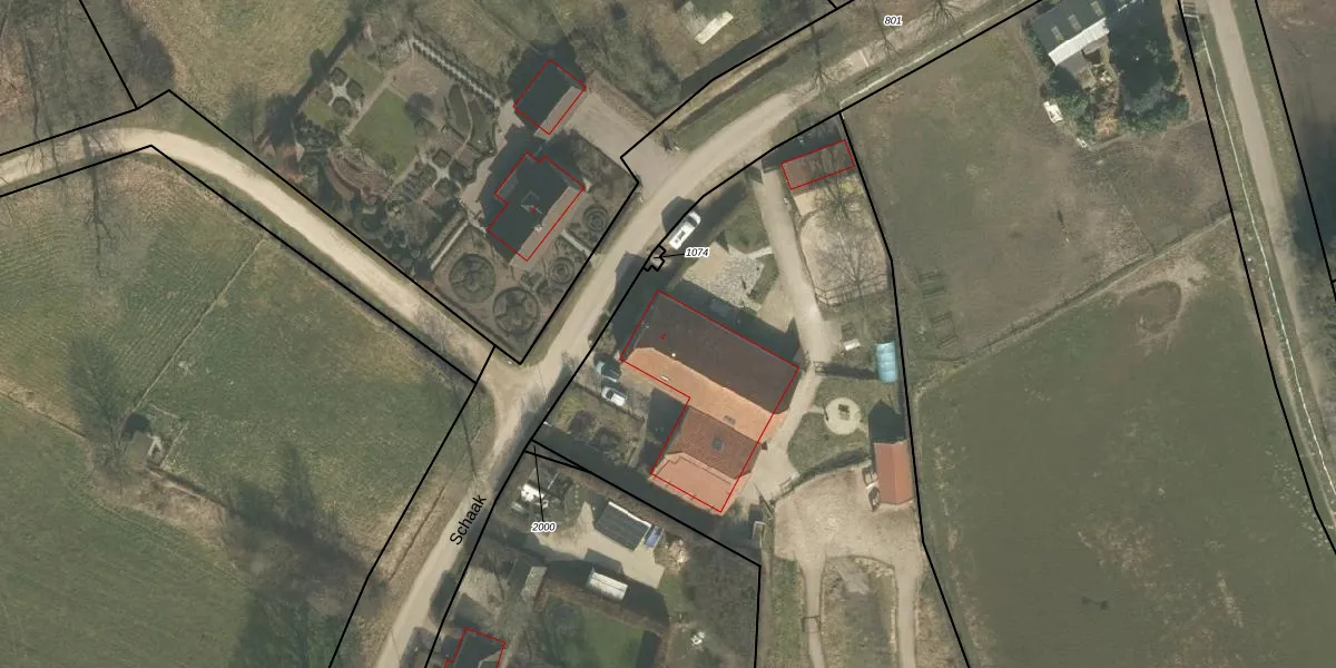 Het perceel waarop Schaak 4 staat heeft een oppervlakte van 6167 m². Dit is een zeer groot perceel. De perceeloppervlakte wordt geregistreerd door het Kadaster. Gedetailleerde informatie over de maten van dit perceel kunt u vinden in het rapport Kadastrale kaart met maatvoering van Schaak 4.