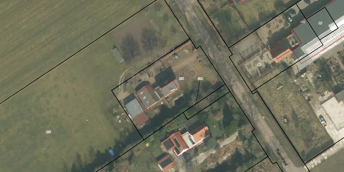 Het perceel waarop Tuinstraat 17 staat heeft een oppervlakte van 1900 m². Dit is een zeer groot perceel. De perceeloppervlakte wordt geregistreerd door het Kadaster. Gedetailleerde informatie over de maten van dit perceel kunt u vinden in het rapport Kadastrale kaart met maatvoering van Tuinstraat 17.