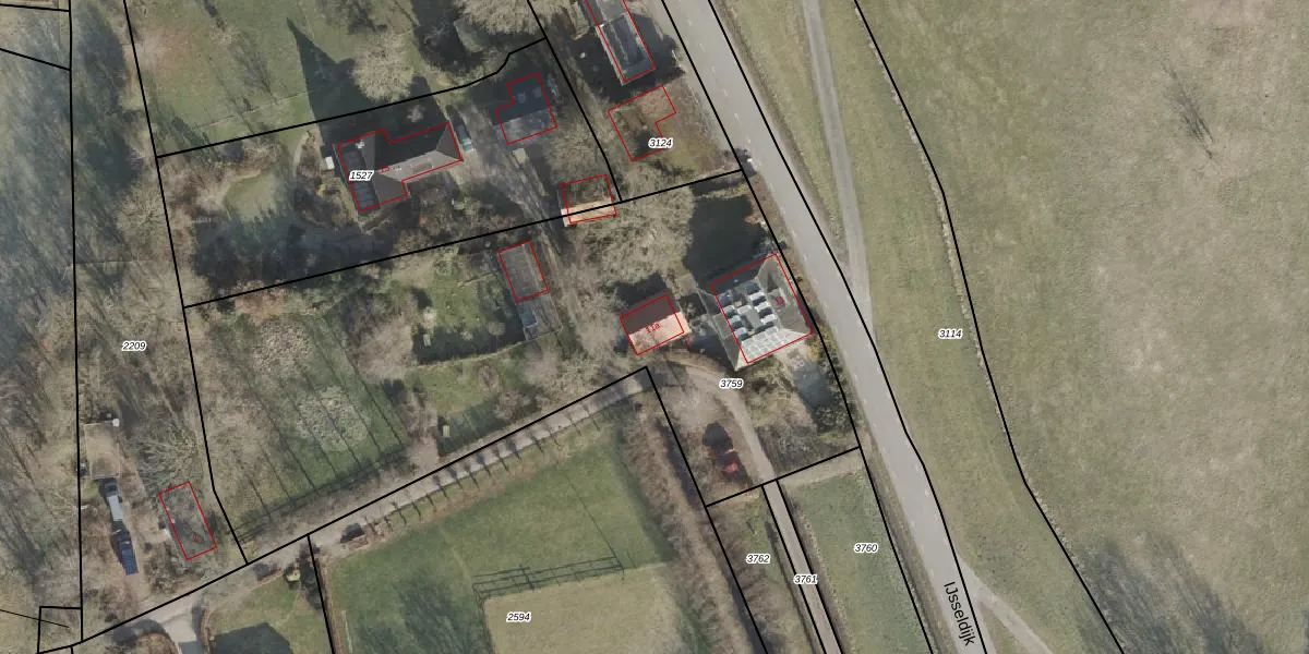 Het perceel waarop IJsseldijk 11-a staat heeft een oppervlakte van 3829 m². Dit is een zeer groot perceel. De perceeloppervlakte wordt geregistreerd door het Kadaster. Gedetailleerde informatie over de maten van dit perceel kunt u vinden in het rapport Kadastrale kaart met maatvoering van IJsseldijk 11-a.