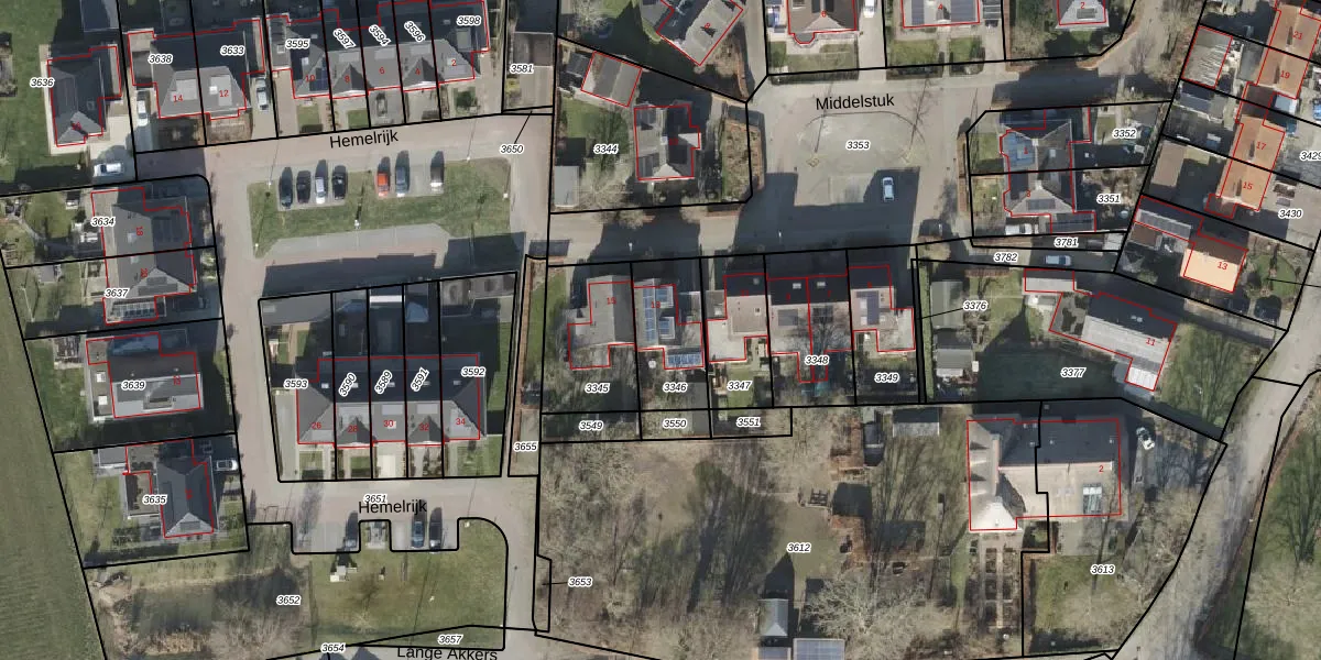 Het perceel waarop Middelstuk 13 staat heeft een oppervlakte van 240 m². Dit is een middelgroot perceel. De perceeloppervlakte wordt geregistreerd door het Kadaster. Gedetailleerde informatie over de maten van dit perceel kunt u vinden in het rapport Kadastrale kaart met maatvoering van Middelstuk 13.