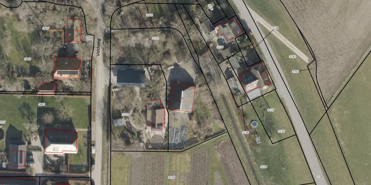 Veldweg 6 is gelegen op kadastraal perceel OLS00G3731. Deze kadastrale aanduiding is uniek en wordt gebruikt door het Kadaster om eigendomsrechten en andere zakelijke rechten vast te leggen. Het perceel maakt onderdeel uit van de kadastrale gemeente Olst.