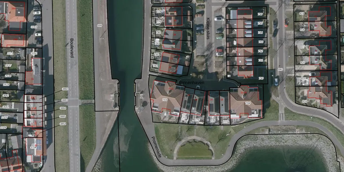 Het perceel waarop Binnenhaven 4 staat heeft een oppervlakte van 465 m². Dit is een groot perceel. De perceeloppervlakte wordt geregistreerd door het Kadaster. Gedetailleerde informatie over de maten van dit perceel kunt u vinden in het rapport Kadastrale kaart met maatvoering van Binnenhaven 4.