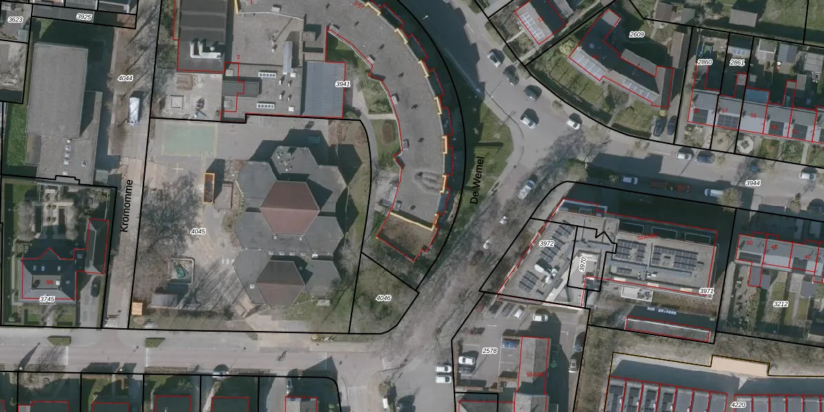 De Wemel 45 is gelegen op kadastraal perceel WMD02C3941. Deze kadastrale aanduiding is uniek en wordt gebruikt door het Kadaster om eigendomsrechten en andere zakelijke rechten vast te leggen. Het perceel maakt onderdeel uit van de kadastrale gemeente Wemeldinge.