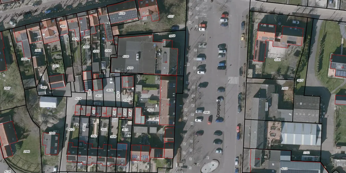 Het perceel waarop Dorpsplein 19 staat heeft een oppervlakte van 1415 m². Dit is een zeer groot perceel. De perceeloppervlakte wordt geregistreerd door het Kadaster. Gedetailleerde informatie over de maten van dit perceel kunt u vinden in het rapport Kadastrale kaart met maatvoering van Dorpsplein 19.