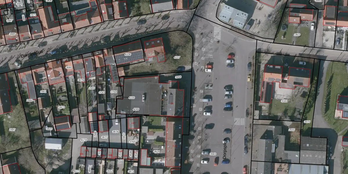 Het perceel waarop Dorpsplein 23-A staat heeft een oppervlakte van 956 m². Dit is een groot perceel. De perceeloppervlakte wordt geregistreerd door het Kadaster. Gedetailleerde informatie over de maten van dit perceel kunt u vinden in het rapport Kadastrale kaart met maatvoering van Dorpsplein 23-A.