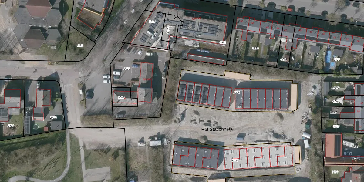 Het perceel waarop Het Stationnetje 28 staat heeft een oppervlakte van 1216 m². Dit is een zeer groot perceel. De perceeloppervlakte wordt geregistreerd door het Kadaster. Gedetailleerde informatie over de maten van dit perceel kunt u vinden in het rapport Kadastrale kaart met maatvoering van Het Stationnetje 28.