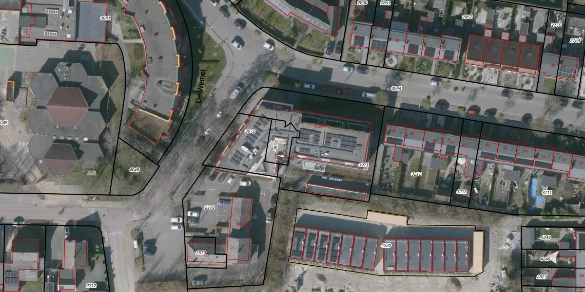 Het adres is gelegen op perceel 3971 in de sectie C en de kadastrale gemeente Wemeldinge. De kadastrale aanduiding is aldus WMD02-C-3971. Het perceel is kleiner dan gemiddeld in Wemeldinge. Het perceel is 1170 m² groot, terwijl het gemiddelde ligt op 8483,84 m². De grootste perceeloppervlakte in de kadastrale gemeente is 10,48 km². De kleinste oppervlakte bedraagt 1 m². Er zijn 7 adressen aanwezig op het perceel. In de Basisregistratie Kadaster (BRK) werden de grenzen van het perceel geregistreerd op 19-07-2005.