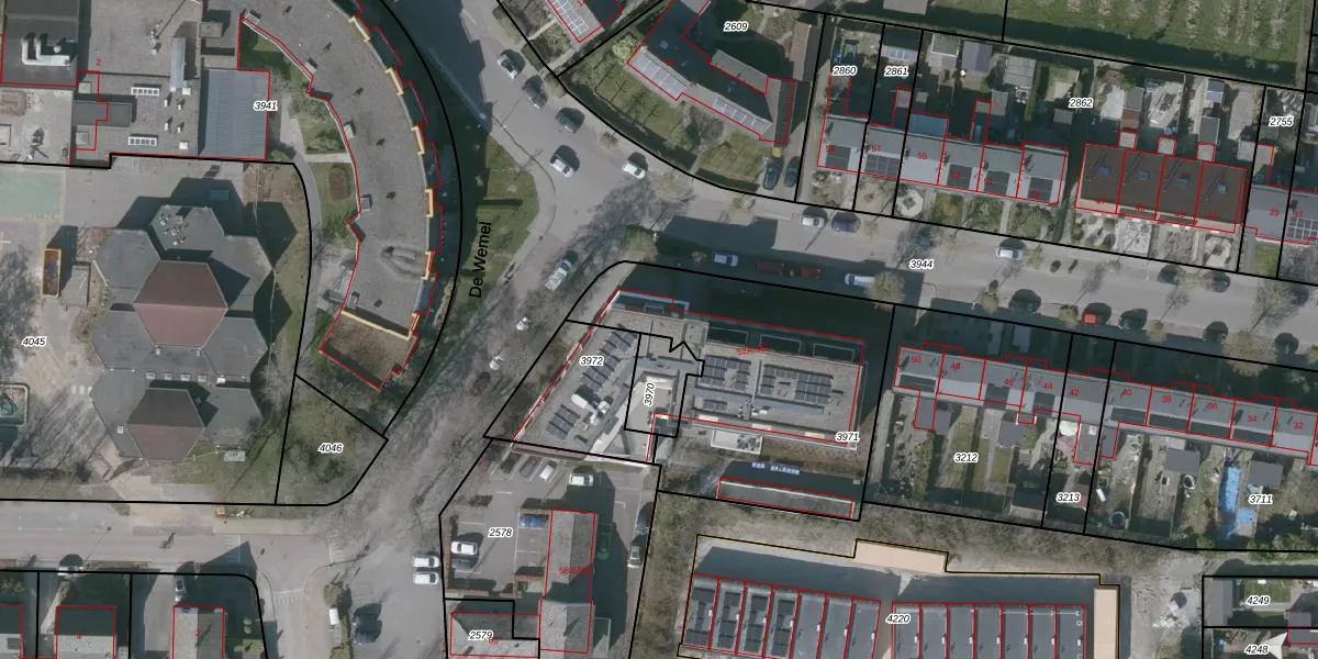 Het adres is gelegen op perceel 3971 in de sectie C en de kadastrale gemeente Wemeldinge. De kadastrale aanduiding is aldus WMD02-C-3971. Het perceel is kleiner dan gemiddeld in Wemeldinge. Het perceel is 1170 m² groot, terwijl het gemiddelde ligt op 8483,84 m². De grootste perceeloppervlakte in de kadastrale gemeente is 10,48 km². De kleinste oppervlakte bedraagt 1 m². Er zijn 7 adressen aanwezig op het perceel. De huidige grenzen van het perceel zijn digitaal in de Basisregistratie Kadaster (BRK) geregistreerd op 19-07-2005.