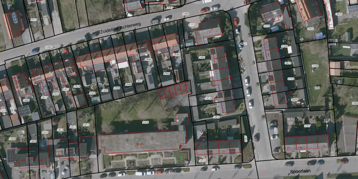 Het perceel waarop Spoorlaan 104 staat heeft een oppervlakte van 2295 m². Dit is een zeer groot perceel. De perceeloppervlakte wordt geregistreerd door het Kadaster. Gedetailleerde informatie over de maten van dit perceel kunt u vinden in het rapport Kadastrale kaart met maatvoering van Spoorlaan 104.
