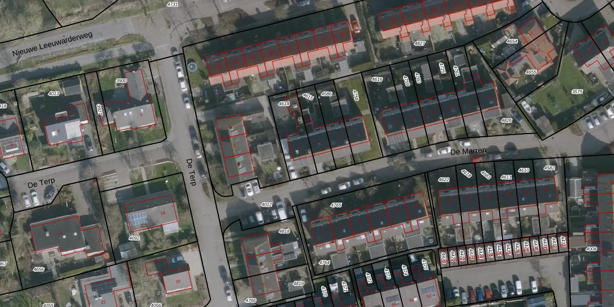 De Marren 1 is gelegen op kadastraal perceel WRG04A4614. Deze kadastrale aanduiding is uniek en wordt gebruikt door het Kadaster om eigendomsrechten en andere zakelijke rechten vast te leggen. Het perceel maakt onderdeel uit van de kadastrale gemeente Warrega.