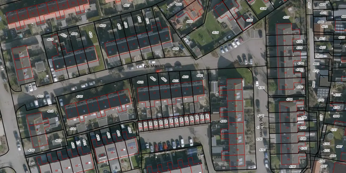 Het perceel waarop De Marren 20 staat heeft een oppervlakte van 162 m². Dit is een middelgroot perceel. De perceeloppervlakte wordt geregistreerd door het Kadaster. Gedetailleerde informatie over de maten van dit perceel kunt u vinden in het rapport Kadastrale kaart met maatvoering van De Marren 20.