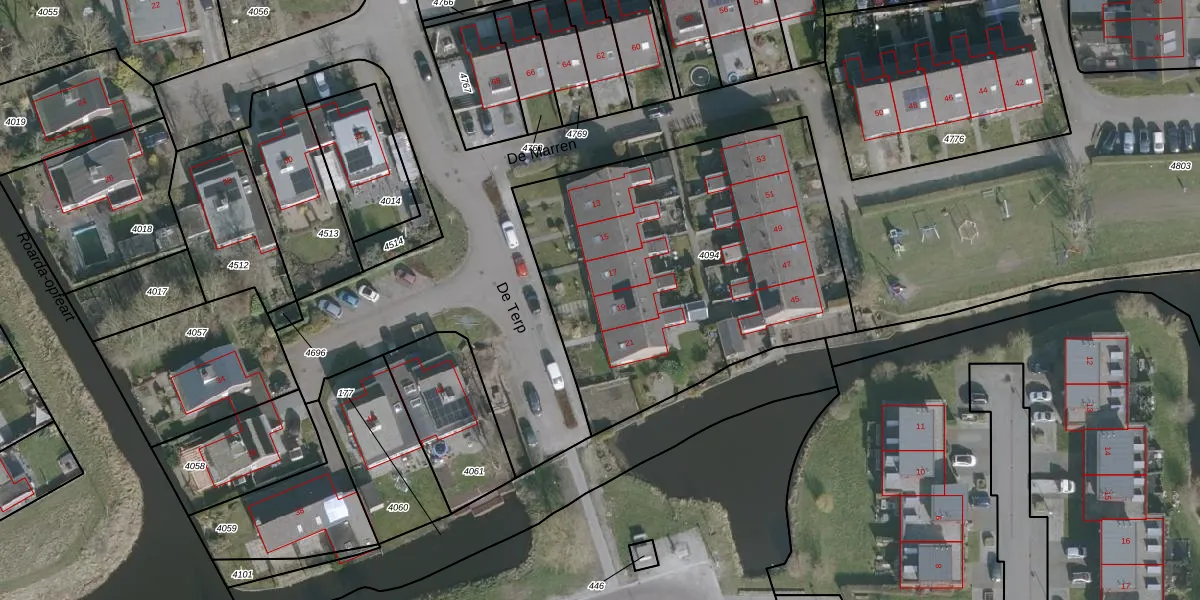 De Terp 19 is gelegen op kadastraal perceel WRG04A4094. Deze kadastrale aanduiding is uniek en wordt gebruikt door het Kadaster om eigendomsrechten en andere zakelijke rechten vast te leggen. Het perceel maakt onderdeel uit van de kadastrale gemeente Warrega.