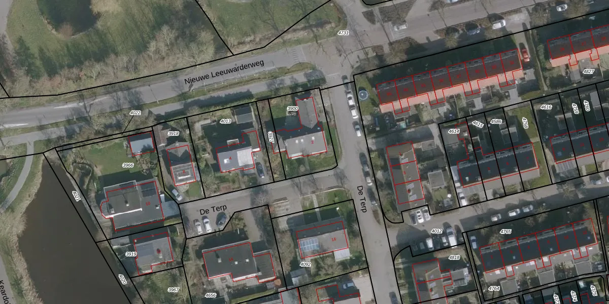 Het perceel waarop De Terp 2 staat heeft een oppervlakte van 466 m². Dit is een groot perceel. De perceeloppervlakte wordt geregistreerd door het Kadaster. Gedetailleerde informatie over de maten van dit perceel kunt u vinden in het rapport Kadastrale kaart met maatvoering van De Terp 2.
