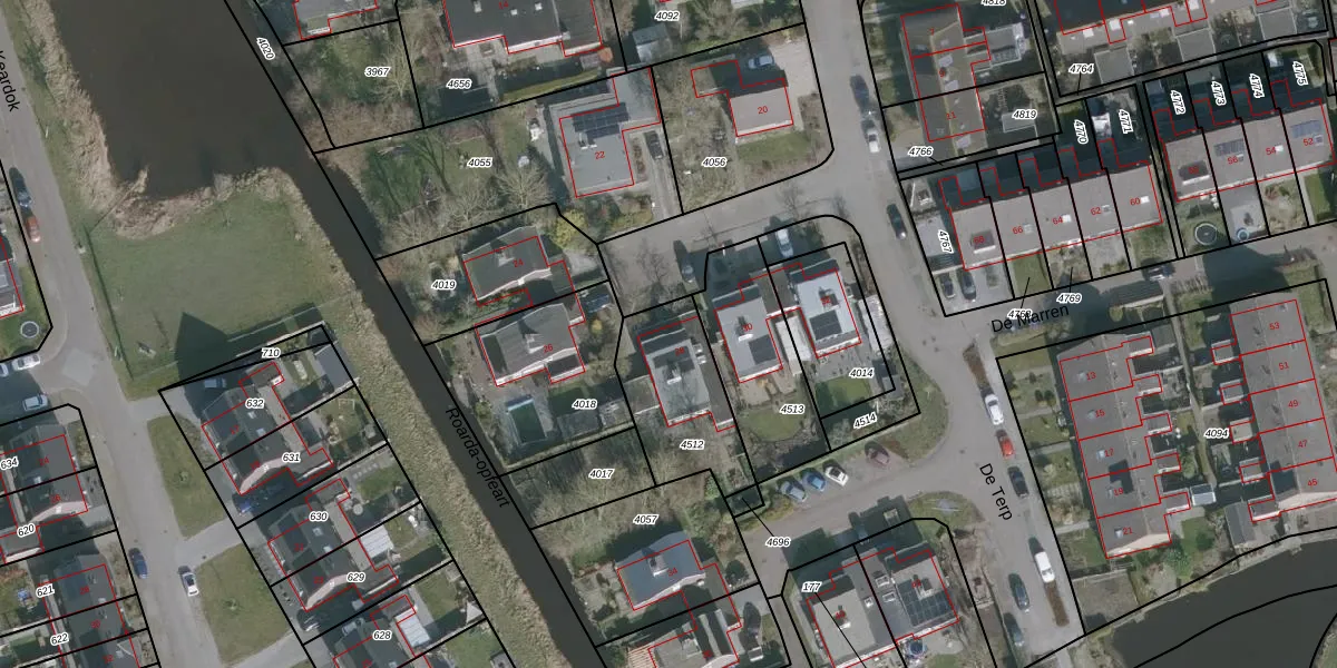 Gebruik de zoekbalk of klik op een perceel voor informatie over de adressen binnen dit perceel.