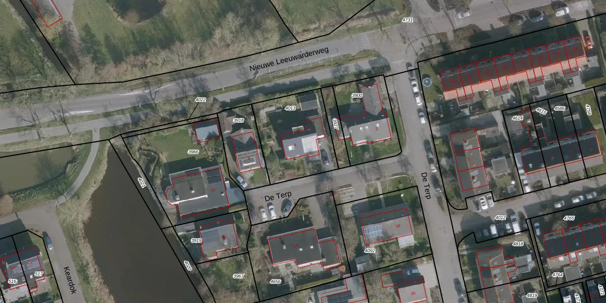 Het perceel waarop De Terp 4 staat heeft een oppervlakte van 619 m². Dit is een groot perceel. De perceeloppervlakte wordt geregistreerd door het Kadaster. Gedetailleerde informatie over de maten van dit perceel kunt u vinden in het rapport Kadastrale kaart met maatvoering van De Terp 4.