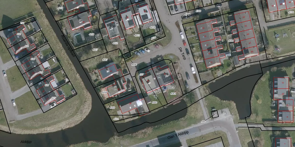 De Terp 40 is gelegen op kadastraal perceel WRG04A4060. Deze kadastrale aanduiding is uniek en wordt gebruikt door het Kadaster om eigendomsrechten en andere zakelijke rechten vast te leggen. Het perceel maakt onderdeel uit van de kadastrale gemeente Warrega.