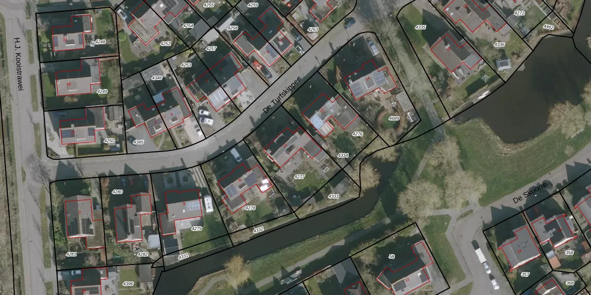 Het perceel waarop De Turfskipper 10 staat heeft een oppervlakte van 585 m². Dit is een groot perceel. De perceeloppervlakte wordt geregistreerd door het Kadaster. Gedetailleerde informatie over de maten van dit perceel kunt u vinden in het rapport Kadastrale kaart met maatvoering van De Turfskipper 10.