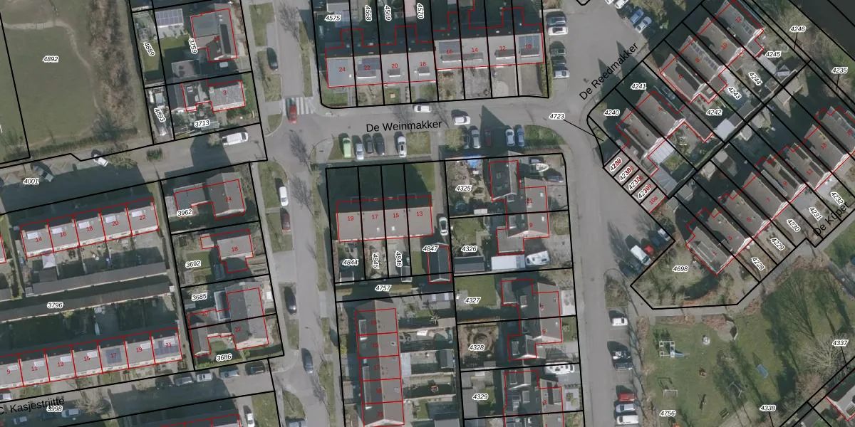 De Weinmakker 13 is gelegen op kadastraal perceel WRG04A4847. Deze kadastrale aanduiding is uniek en wordt gebruikt door het Kadaster om eigendomsrechten en andere zakelijke rechten vast te leggen. Het perceel maakt onderdeel uit van de kadastrale gemeente Warrega.