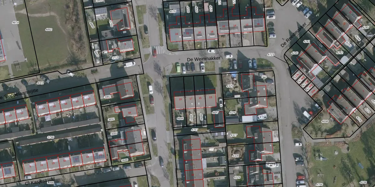 De Weinmakker 17 is gelegen op kadastraal perceel WRG04A4845. Deze kadastrale aanduiding is uniek en wordt gebruikt door het Kadaster om eigendomsrechten en andere zakelijke rechten vast te leggen. Het perceel maakt onderdeel uit van de kadastrale gemeente Warrega.