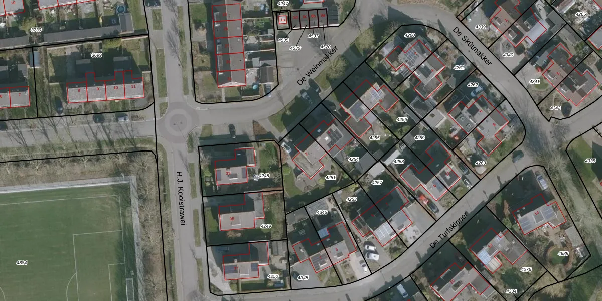 Het perceel waarop De Weinmakker 2 staat heeft een oppervlakte van 413 m². Dit is een groot perceel. De perceeloppervlakte wordt geregistreerd door het Kadaster. Gedetailleerde informatie over de maten van dit perceel kunt u vinden in het rapport Kadastrale kaart met maatvoering van De Weinmakker 2.