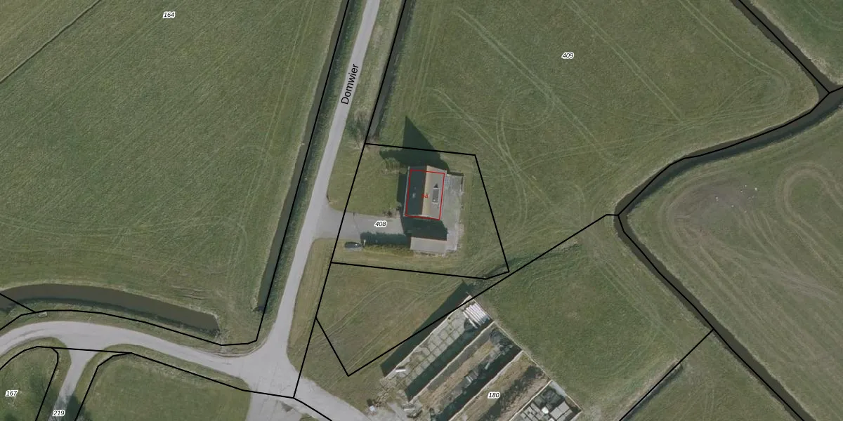 Het adres is gelegen op perceel 408 in de sectie E en de kadastrale gemeente Warrega. De kadastrale aanduiding is aldus WRG04-E-408. Het perceel is kleiner dan gemiddeld in Warrega. Het perceel is 1000 m² groot, terwijl het gemiddelde ligt op 1,1 ha. De grootste perceeloppervlakte in de kadastrale gemeente is 59,4 ha. De kleinste oppervlakte bedraagt 0 m². Er zijn geen andere adressen aanwezig op het perceel. De laatste wijziging in het de Basisregistratie Kadaster (BRK) was op 10-01-2012.