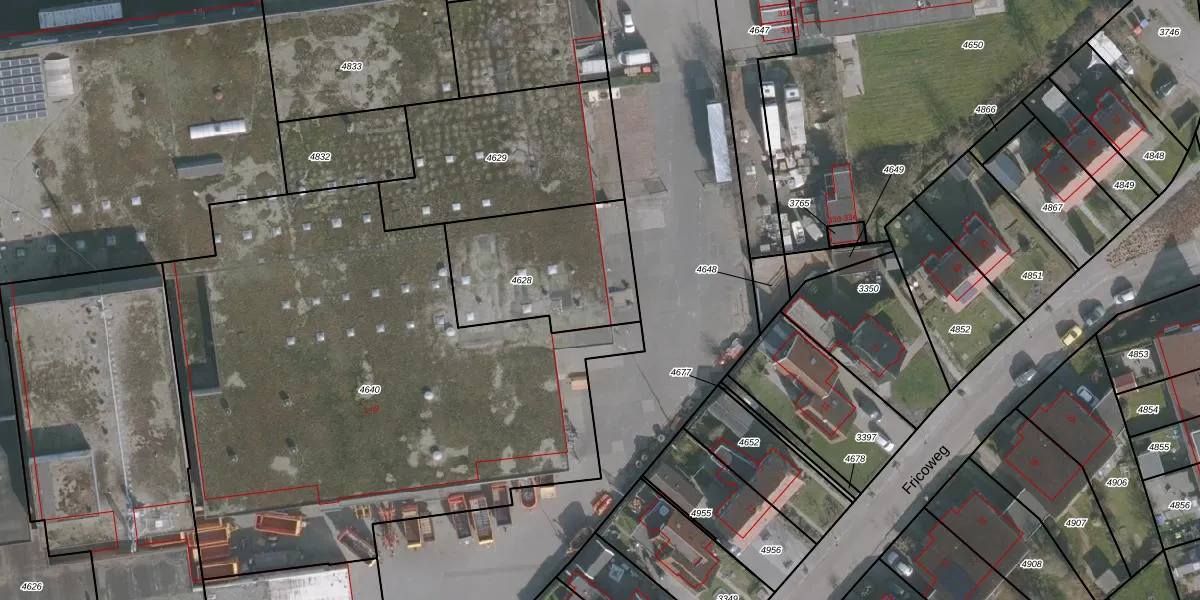 Het perceel waarop Fricoweg 1-e staat heeft een oppervlakte van 577 m². Dit is een groot perceel. De perceeloppervlakte wordt geregistreerd door het Kadaster. Gedetailleerde informatie over de maten van dit perceel kunt u vinden in het rapport Kadastrale kaart met maatvoering van Fricoweg 1-e.