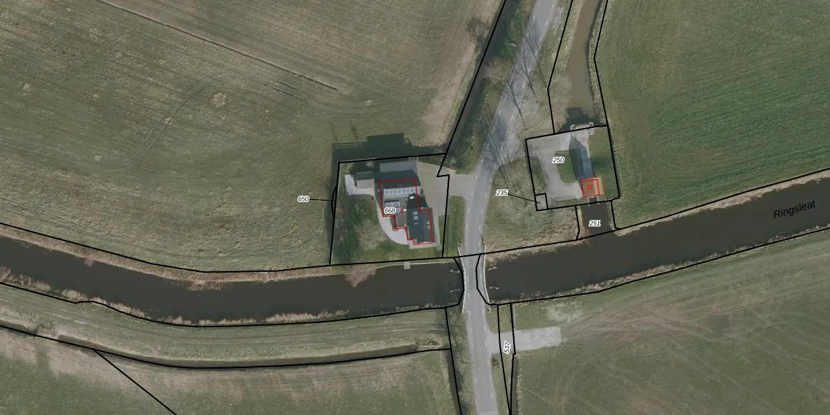 Het adres ligt op het perceel WRG04-D-668, dat zich in de kadastrale gemeente Warrega bevindt. Het perceel is kleiner dan gemiddeld in Warrega. Het perceel is 658 m² groot, terwijl het gemiddelde ligt op 1,1 ha. Het kleinste perceel in de kadastrale gemeente is 0 m² groot. De grootste perceeloppervlakte is 59,4 ha. Er zijn geen andere adressen aanwezig op het perceel. De huidige grenzen van het perceel zijn digitaal in de Basisregistratie Kadaster (BRK) geregistreerd op 19-08-2020.