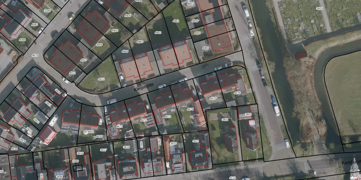 Het perceel waarop Kleijstrjitte 12 staat heeft een oppervlakte van 375 m². Dit is een groot perceel. De perceeloppervlakte wordt geregistreerd door het Kadaster. Gedetailleerde informatie over de maten van dit perceel kunt u vinden in het rapport Kadastrale kaart met maatvoering van Kleijstrjitte 12.