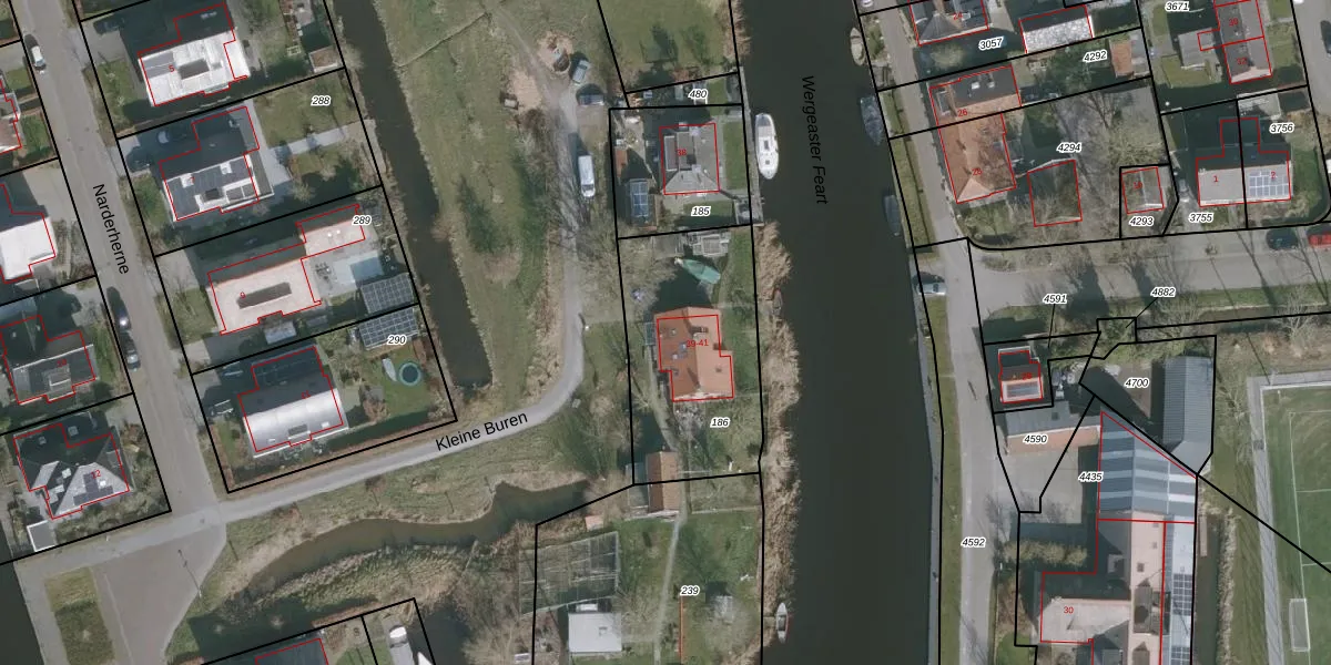 Kleine Buren 39 is gelegen op kadastraal perceel WRG04D186. Deze kadastrale aanduiding is uniek en wordt gebruikt door het Kadaster om eigendomsrechten en andere zakelijke rechten vast te leggen. Het perceel maakt onderdeel uit van de kadastrale gemeente Warrega.