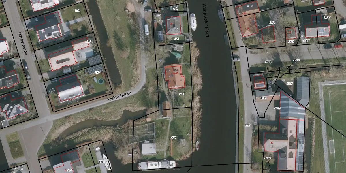 Kleine Buren 41 is gelegen op kadastraal perceel WRG04D186. Deze kadastrale aanduiding is uniek en wordt gebruikt door het Kadaster om eigendomsrechten en andere zakelijke rechten vast te leggen. Het perceel maakt onderdeel uit van de kadastrale gemeente Warrega.