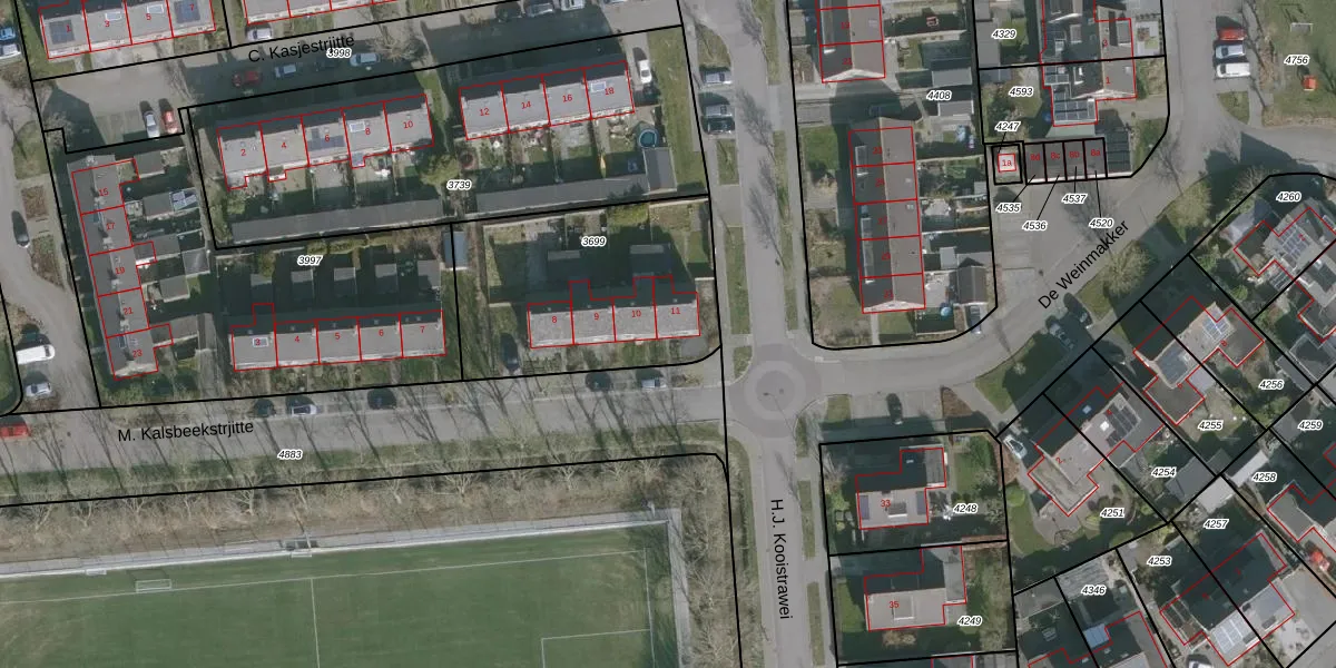 M. Kalsbeekstrjitte 11 is gelegen op kadastraal perceel WRG04A3699. Deze kadastrale aanduiding is uniek en wordt gebruikt door het Kadaster om eigendomsrechten en andere zakelijke rechten vast te leggen. Het perceel maakt onderdeel uit van de kadastrale gemeente Warrega.