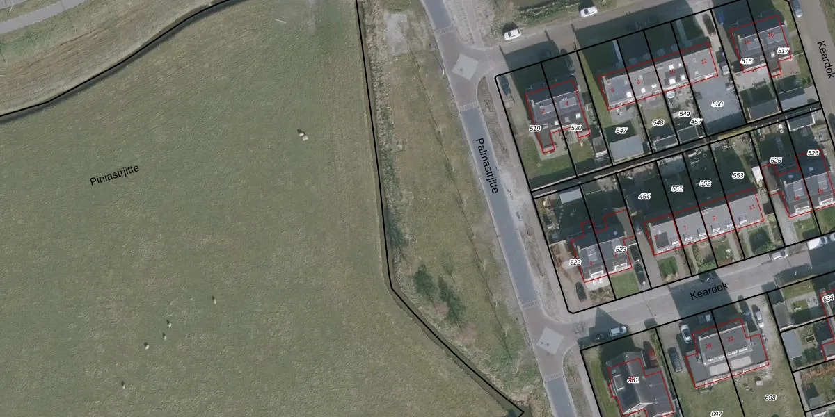 Piniastrjitte 9 is gelegen op kadastraal perceel WRG04D709. Deze kadastrale aanduiding is uniek en wordt gebruikt door het Kadaster om eigendomsrechten en andere zakelijke rechten vast te leggen. Het perceel maakt onderdeel uit van de kadastrale gemeente Warrega.