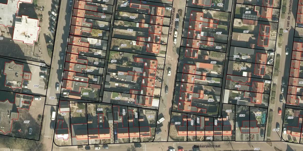 Het perceel waarop A van Drielstraat 23 staat heeft een oppervlakte van 995 m². Dit is een groot perceel. De perceeloppervlakte wordt geregistreerd door het Kadaster. Gedetailleerde informatie over de maten van dit perceel kunt u vinden in het rapport Kadastrale kaart met maatvoering van A van Drielstraat 23.