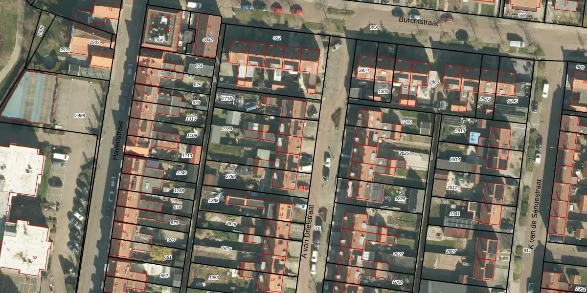 Het perceel waarop A van Drielstraat 5 staat heeft een oppervlakte van 647 m². Dit is een groot perceel. De perceeloppervlakte wordt geregistreerd door het Kadaster. Gedetailleerde informatie over de maten van dit perceel kunt u vinden in het rapport Kadastrale kaart met maatvoering van A van Drielstraat 5.
