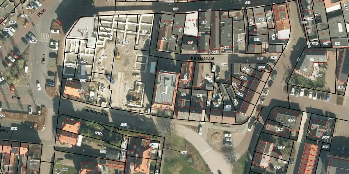 Het perceel waarop Amerscamp 10-c staat heeft een oppervlakte van 455 m². Dit is een groot perceel. De perceeloppervlakte wordt geregistreerd door het Kadaster. Gedetailleerde informatie over de maten van dit perceel kunt u vinden in het rapport Kadastrale kaart met maatvoering van Amerscamp 10-c.