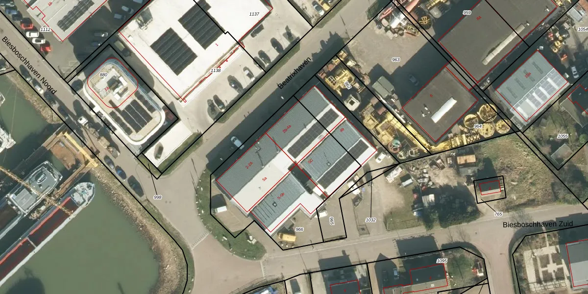 Het perceel waarop Beatrixhaven 2-c staat heeft een oppervlakte van 1558 m². Dit is een zeer groot perceel. De perceeloppervlakte wordt geregistreerd door het Kadaster. Gedetailleerde informatie over de maten van dit perceel kunt u vinden in het rapport Kadastrale kaart met maatvoering van Beatrixhaven 2-c.