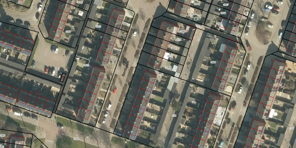 Het perceel waarop Bentlaken 47 staat heeft een oppervlakte van 3281 m². Dit is een zeer groot perceel. De perceeloppervlakte wordt geregistreerd door het Kadaster. Gedetailleerde informatie over de maten van dit perceel kunt u vinden in het rapport Kadastrale kaart met maatvoering van Bentlaken 47.