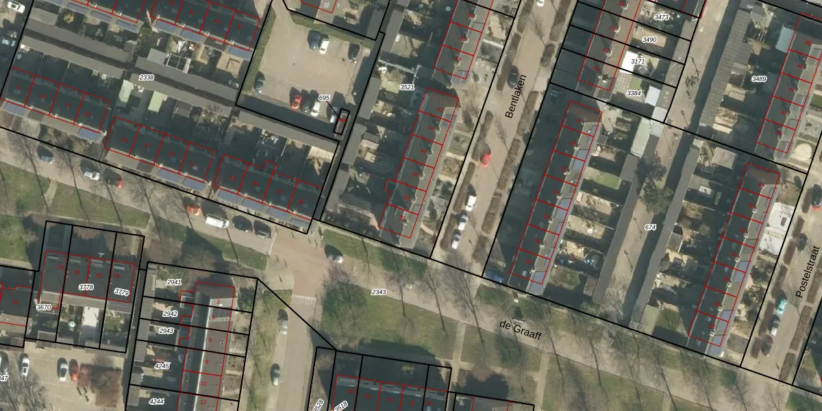 Het perceel waarop Bentlaken 50 staat heeft een oppervlakte van 2221 m². Dit is een zeer groot perceel. De perceeloppervlakte wordt geregistreerd door het Kadaster. Gedetailleerde informatie over de maten van dit perceel kunt u vinden in het rapport Kadastrale kaart met maatvoering van Bentlaken 50.