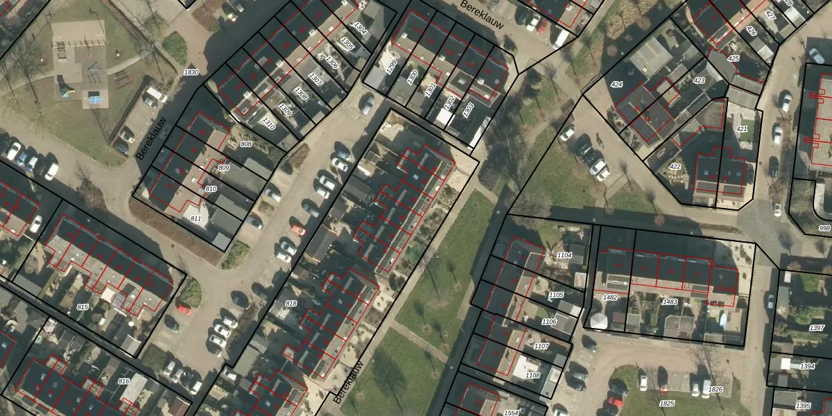 Het perceel waarop Bereklauw 82 staat heeft een oppervlakte van 2521 m². Dit is een zeer groot perceel. De perceeloppervlakte wordt geregistreerd door het Kadaster. Gedetailleerde informatie over de maten van dit perceel kunt u vinden in het rapport Kadastrale kaart met maatvoering van Bereklauw 82.