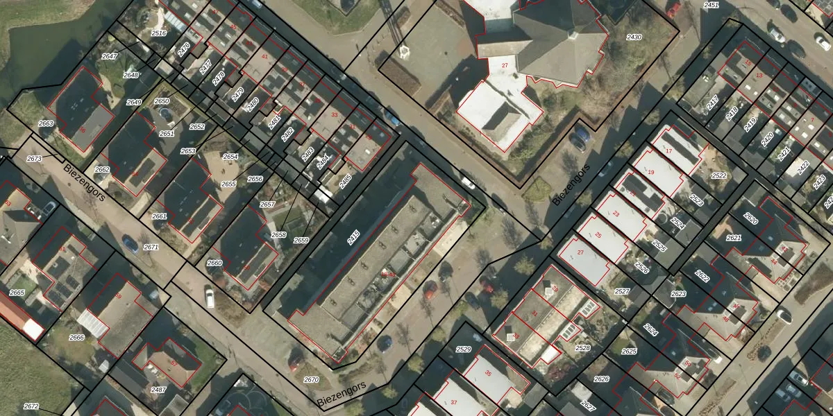 Biezengors 20 is gelegen op kadastraal perceel WKD00R2415. Deze kadastrale aanduiding is uniek en wordt gebruikt door het Kadaster om eigendomsrechten en andere zakelijke rechten vast te leggen. Het perceel maakt onderdeel uit van de kadastrale gemeente Werkendam.