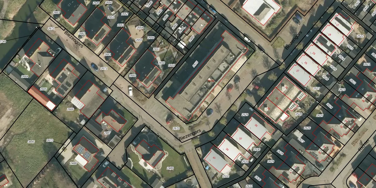Biezengors 30 is gelegen op kadastraal perceel WKD00R2415. Deze kadastrale aanduiding is uniek en wordt gebruikt door het Kadaster om eigendomsrechten en andere zakelijke rechten vast te leggen. Het perceel maakt onderdeel uit van de kadastrale gemeente Werkendam.