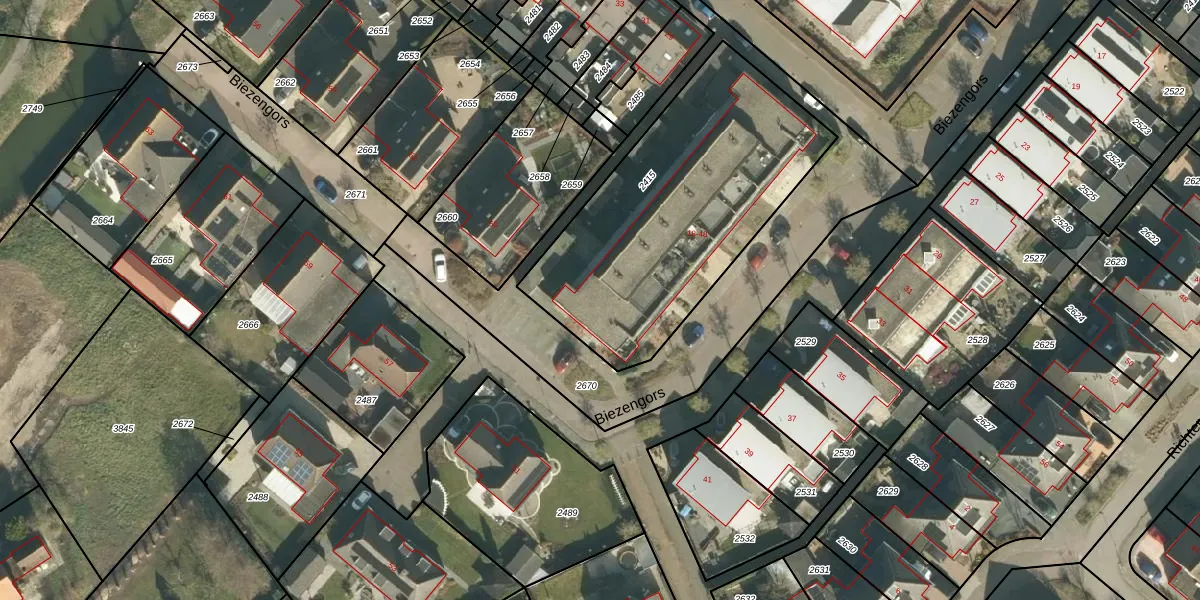 Biezengors 32 is gelegen op kadastraal perceel WKD00R2415. Deze kadastrale aanduiding is uniek en wordt gebruikt door het Kadaster om eigendomsrechten en andere zakelijke rechten vast te leggen. Het perceel maakt onderdeel uit van de kadastrale gemeente Werkendam.