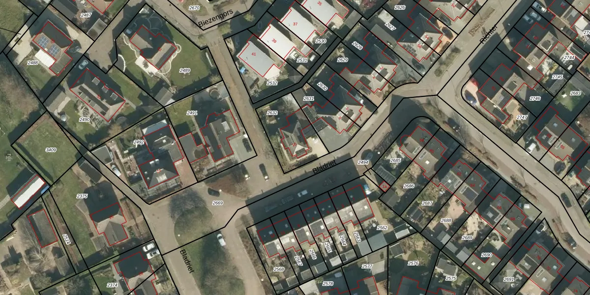 Het perceel waarop Bladriet 10 staat heeft een oppervlakte van 363 m². Dit is een groot perceel. De perceeloppervlakte wordt geregistreerd door het Kadaster. Gedetailleerde informatie over de maten van dit perceel kunt u vinden in het rapport Kadastrale kaart met maatvoering van Bladriet 10.
