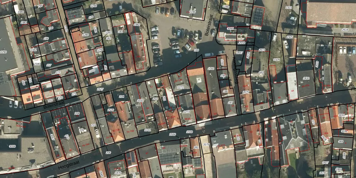 Het perceel waarop Boterstraat 13-c staat heeft een oppervlakte van 141 m². Dit is een middelgroot perceel. De perceeloppervlakte wordt geregistreerd door het Kadaster. Gedetailleerde informatie over de maten van dit perceel kunt u vinden in het rapport Kadastrale kaart met maatvoering van Boterstraat 13-c.
