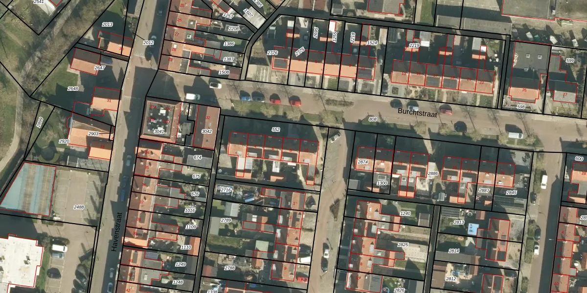Het perceel waarop Burchtstraat 8 staat heeft een oppervlakte van 767 m². Dit is een groot perceel. De perceeloppervlakte wordt geregistreerd door het Kadaster. Gedetailleerde informatie over de maten van dit perceel kunt u vinden in het rapport Kadastrale kaart met maatvoering van Burchtstraat 8.