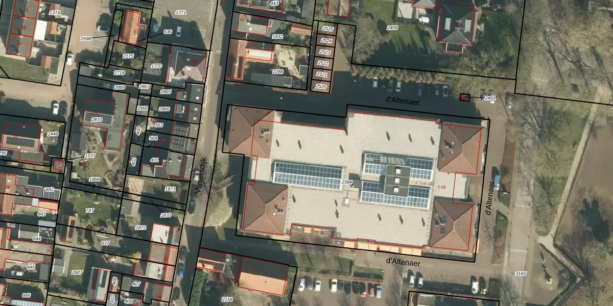 Het perceel waarop d'Altenaer 41 staat heeft een oppervlakte van 3615 m². Dit is een zeer groot perceel. De perceeloppervlakte wordt geregistreerd door het Kadaster. Gedetailleerde informatie over de maten van dit perceel kunt u vinden in het rapport Kadastrale kaart met maatvoering van d'Altenaer 41.